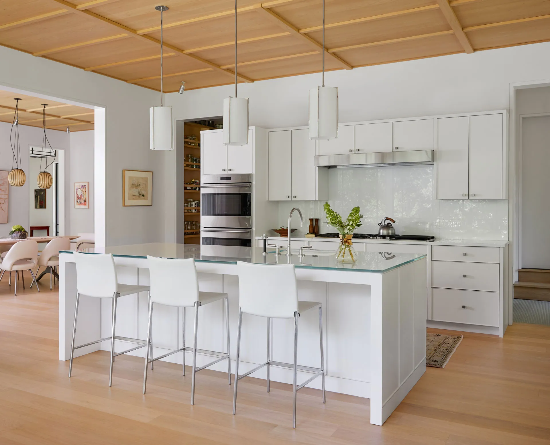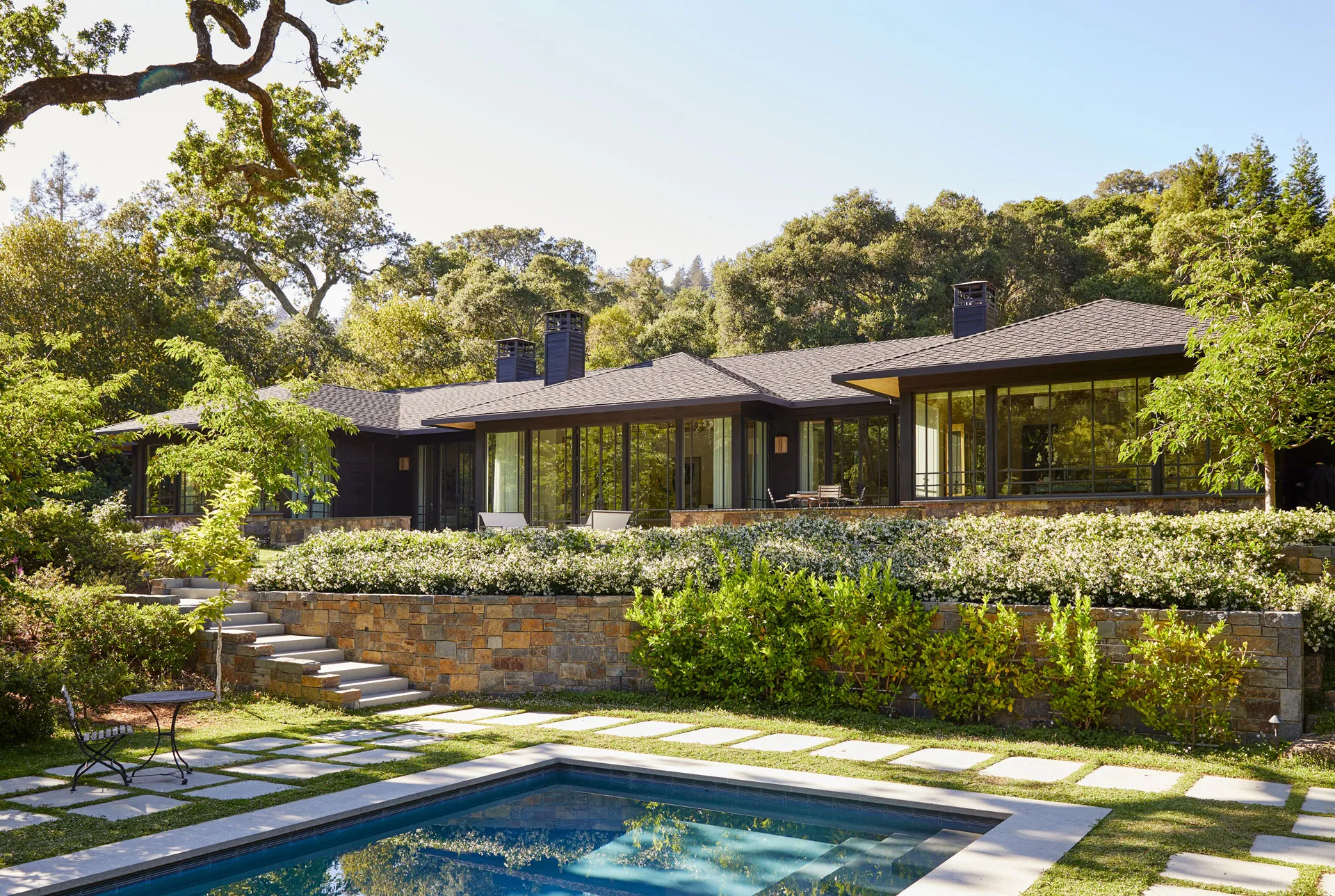 A Japanese-inspired home in Marin County is the elegant result of deeply understanding how the homeowners—two Bay Area artists—live and how their structure interacts with the one-acre property. The existing house was neither built nor oriented well; the newly designed one-story dwelling faces south to maintain the best sun exposure and garden views. Collaborating with sophisticated clients with impeccable taste and who understood architectural and design details was a joy,